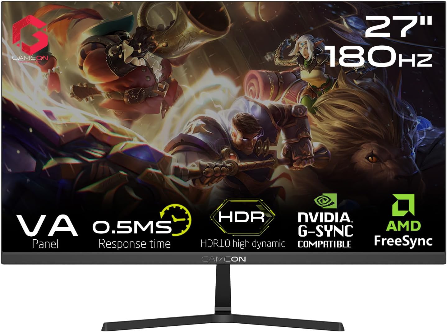 GameOn Pro-Series GOPS27180VA 27" FHD, 180Hz, 0.5ms, HDMI 2.0 Gaming Monitor (Adaptive Sync And G-Sync Compatible) Fast VA