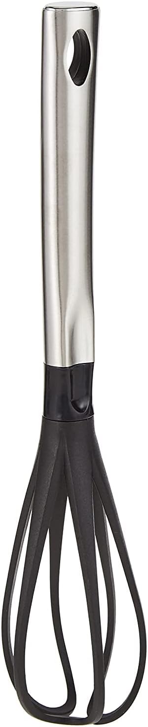 - The Royalford Nylon Whisk with Long Stainless Steel handle that will allow you to whisk or whip as per requirements. The wire loops of the whisk make this whisk durable and long-lasting. Simplify your kitchen accessories by this premium nylon whisk from Royalford. The high quality, super sturdy wires make quick work of whisking and beating a wide range of foods. From eggs to pudding, and everything in between, you can easily create attractive garnishes and add intense flavour to your favourite recipes with this one convenient kitchen utensil.The line will not mold, peel, crack, warp, absorb odour, or fade.A good whisk will help greatly in the kitchen with versatile ability to whisk, beat, thicken, froth, blend, and stir any number of your favourite creations.The joy of serving up to family and friends a beautifully smooth custard or sauce with no lumps in it whatsoever is a great and satisfying feeling.This professional-style whisk is up for any task - whether you're beating eggs for an omelette or whipping up a quick vinaigrette. A good assistant for whisking eggs, icing sugar mixture, stirring sauces and melting chocolate fresh cream enable your household easier and effective. The handle of this whisk is made of stainless steel and is finished with silver polish. This makes it attractive and comfortable to hold. Use this stainless steel whisk to get the right consistency while beating eggs or batter. The whisk also contains a loop that facilitates storage on hooks in the kitchen. And it is dishwasher safe too.