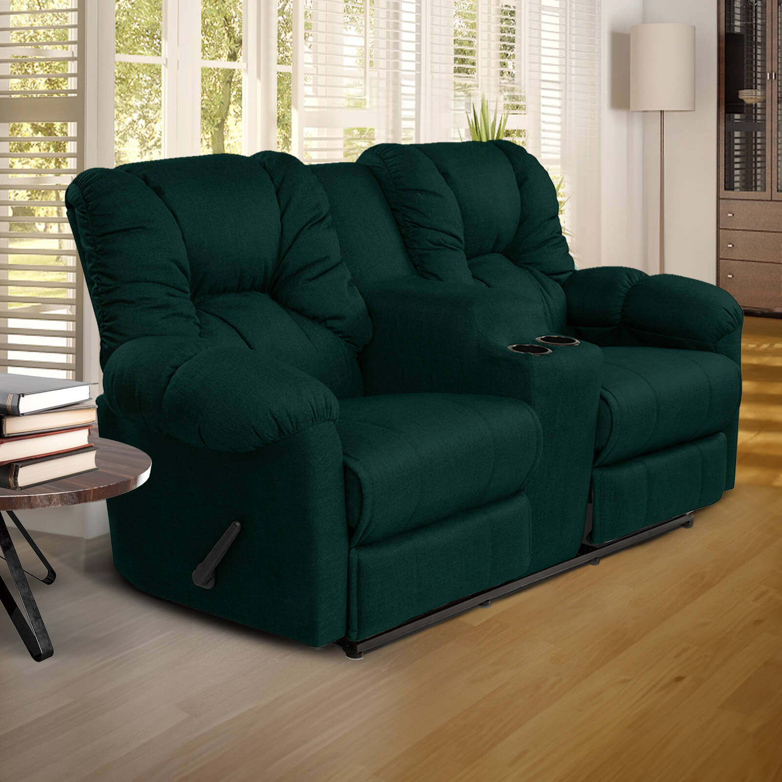 American Polo Linen Double Cinematic Recliner Chair With Cups Holder - Dark Green - American Polo