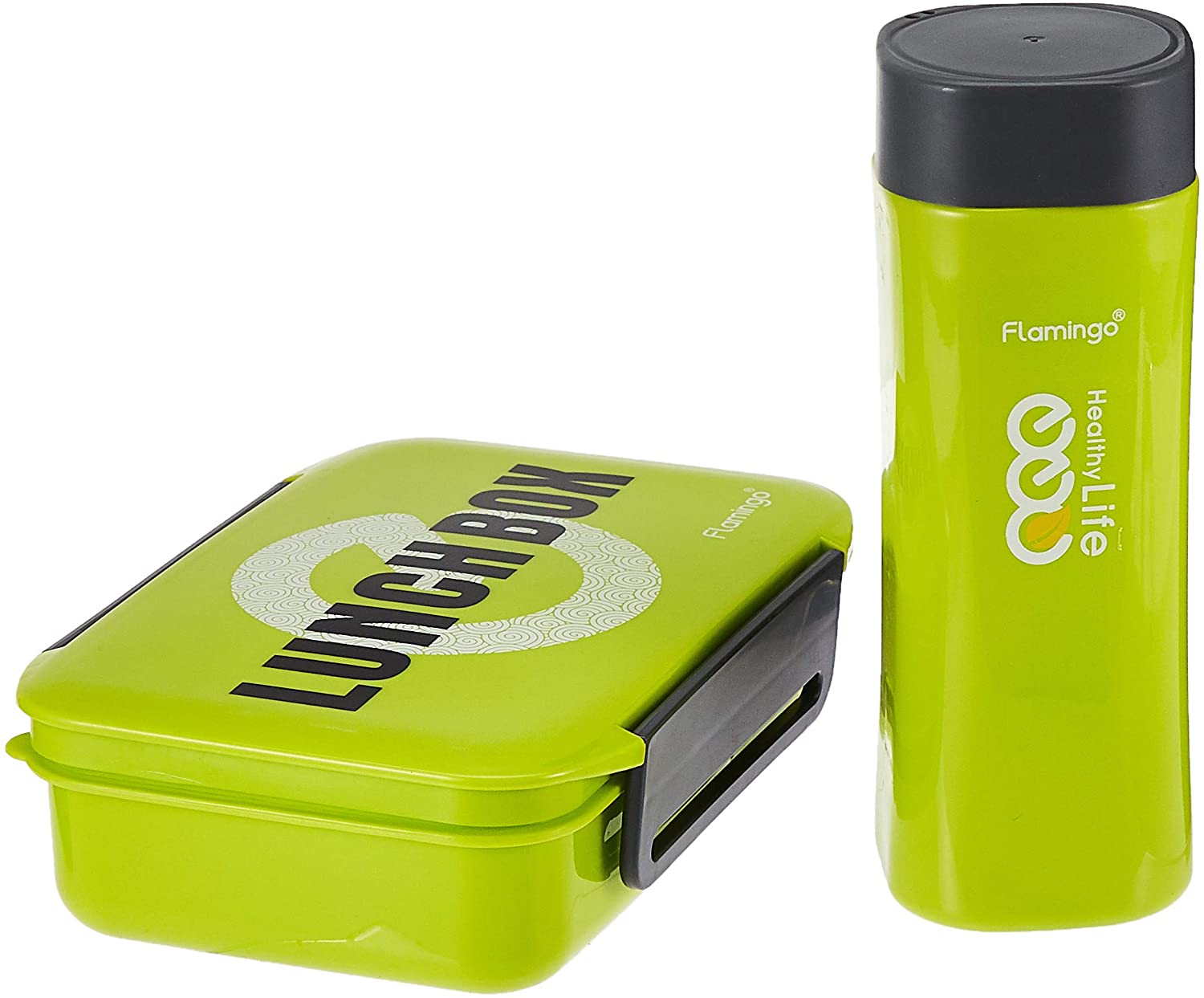 Flamingo Lunch Box With Bottle Set, Green/Black, FL5404PLB