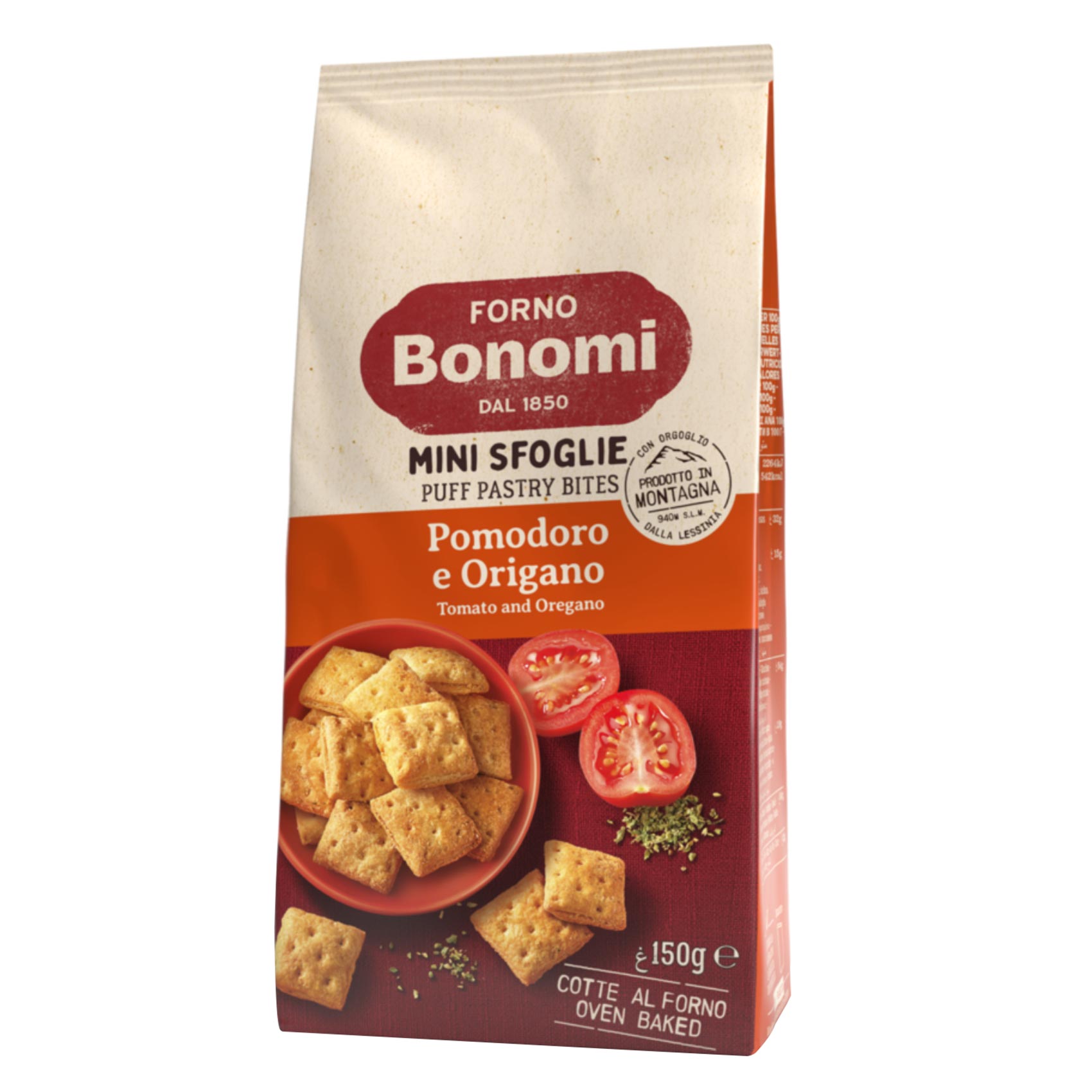 Forno Bonomi Mini Sfoglie Puff Pastry Bites - Tomato and Oregano - Orgoglio Prodotto in Montagna - Oven Baked 150g