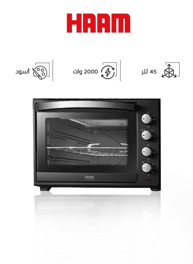Haam Oven With Grill, 45 Liters, Black, 2000 Watt, Non-Stick, HMTO45L-19