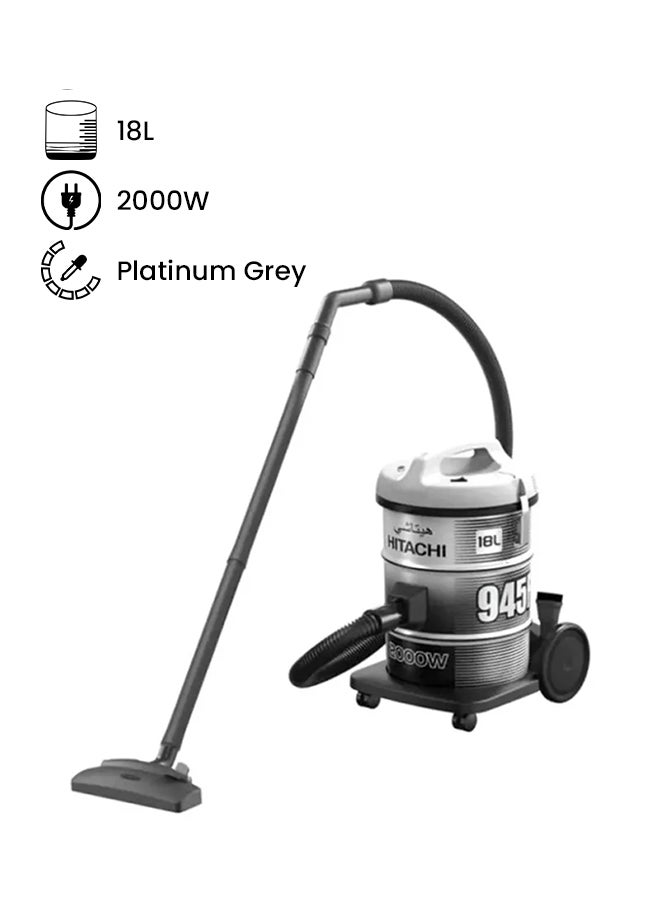 Hitachi Vacuum Cleaner With Unique Design 18L, 2000W, CV-945F SS220, Platinum Grey