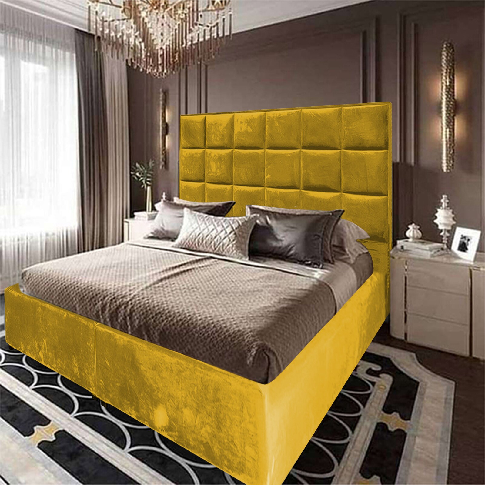 In House Alex Velvet Bed Frame - King - 200x200 cm - Gold
