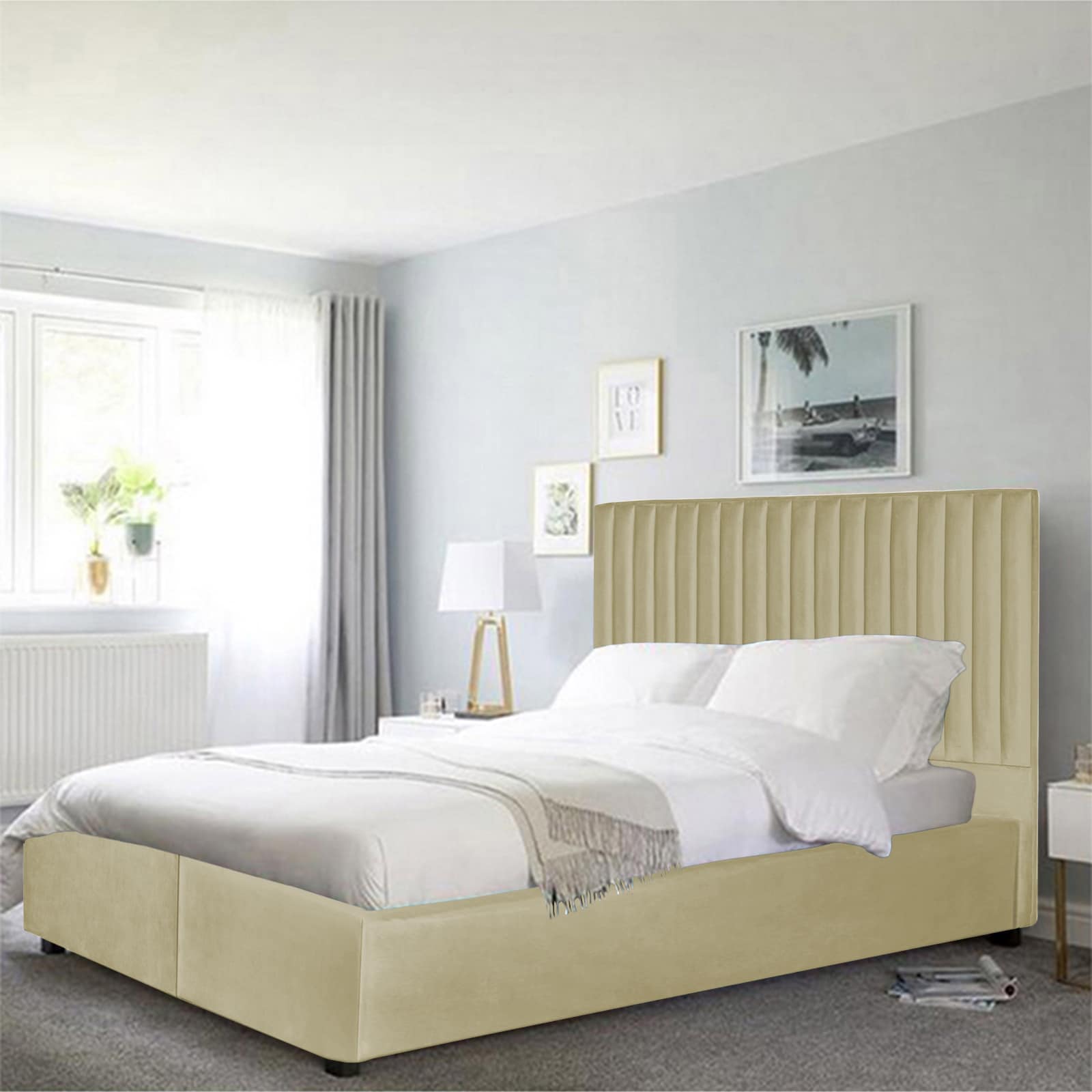In House Alkmar Velvet Bed Frame - King - 200x180 cm - Beige