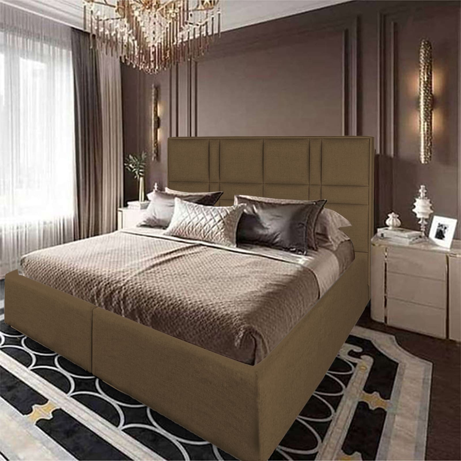 In House Berlin Linen Bed Frame - King - 200x200cm - Brown