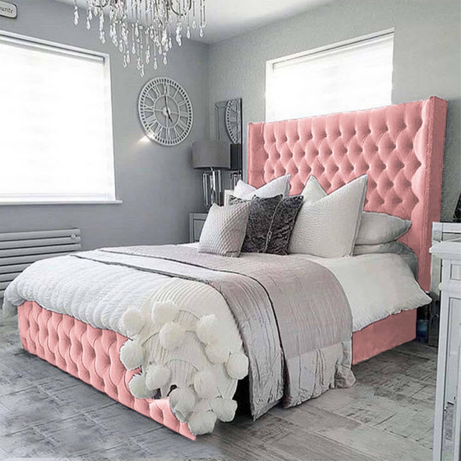 In House Burgas Velvet Bed Frame - Single - 200x90 cm - Light Pink