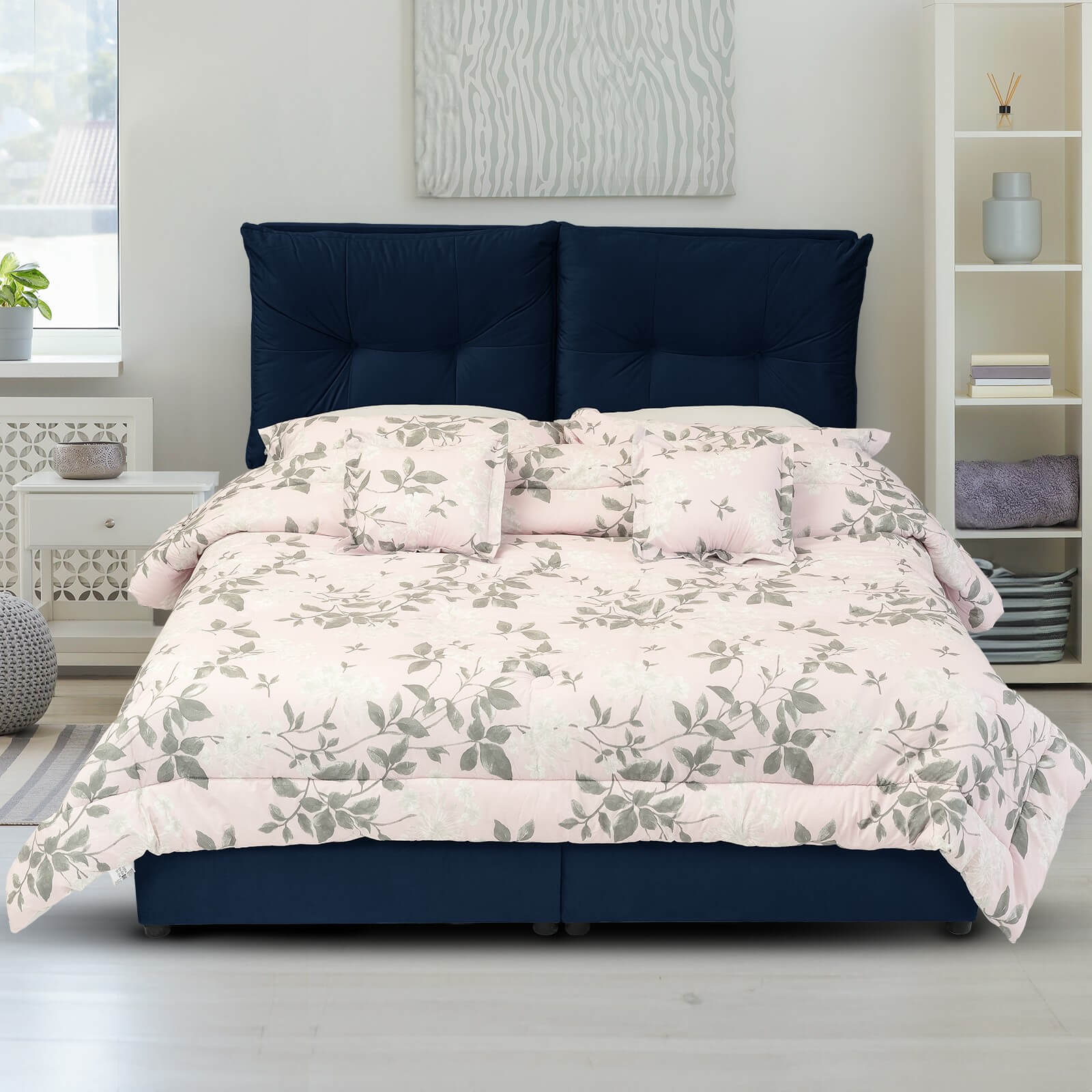 * Headboard : This is the main vertical part of the bed, which is behind the head pillow area. The dorsal comes in different designs and gives the family a more elegant and aesthetic look.