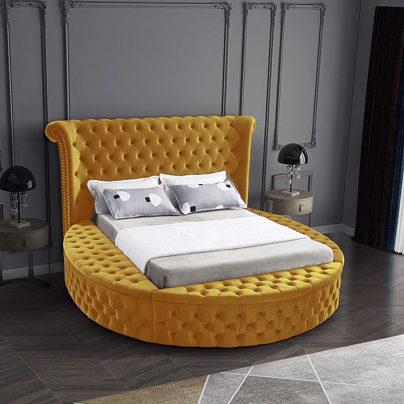 In House Lotus Velvet Bed Frame - King - 200x180 cm - Gold