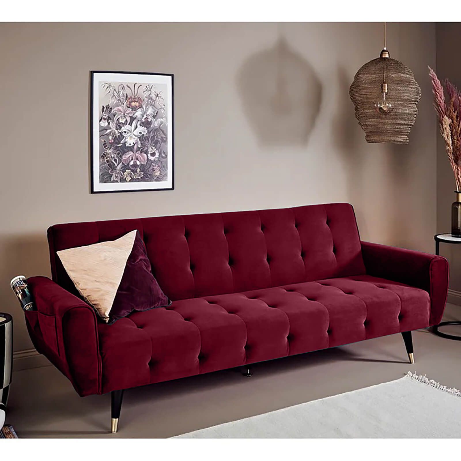 In House Montella 2 In 1 Sofabed Velvet Upholstered - Burgundy