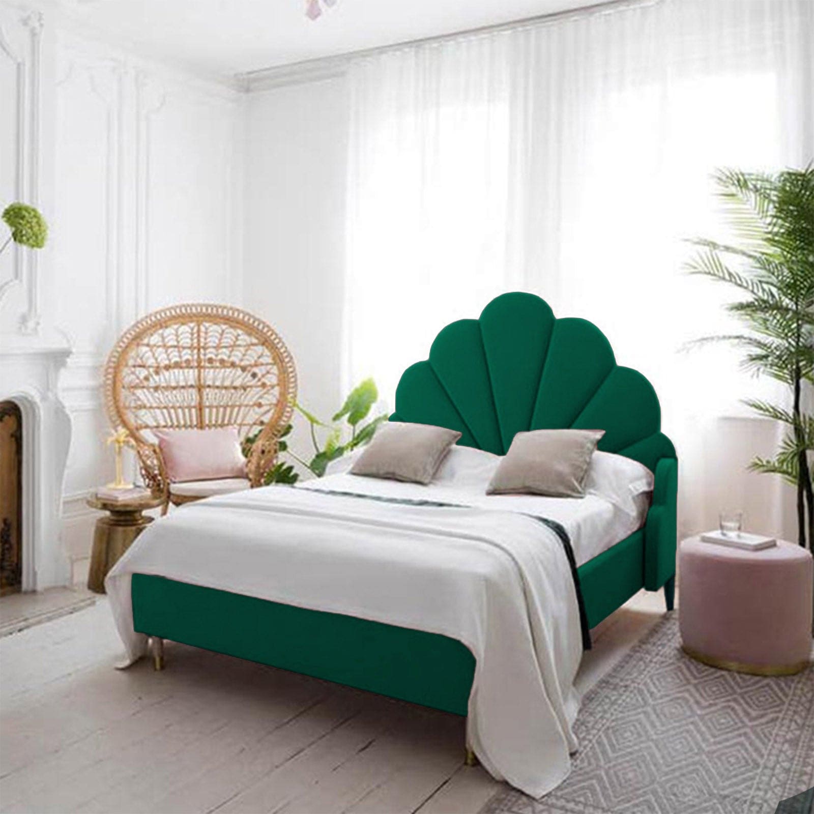 In House Napoli Velvet Bed Frame - Queen - 200x160 cm - Dark Green