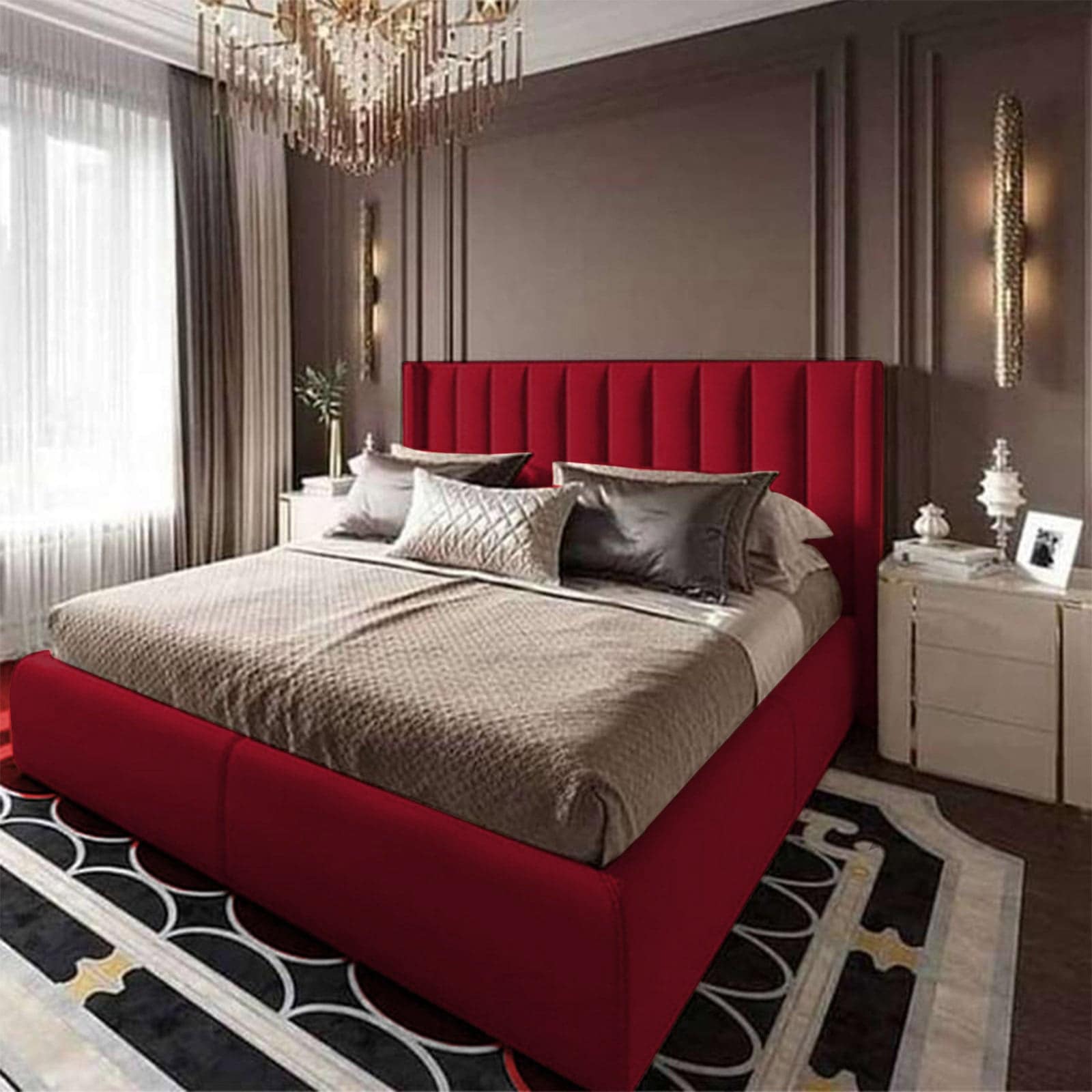 In House Palermo Velvet Bed Frame - Queen - 200x140 cm - Burgundy