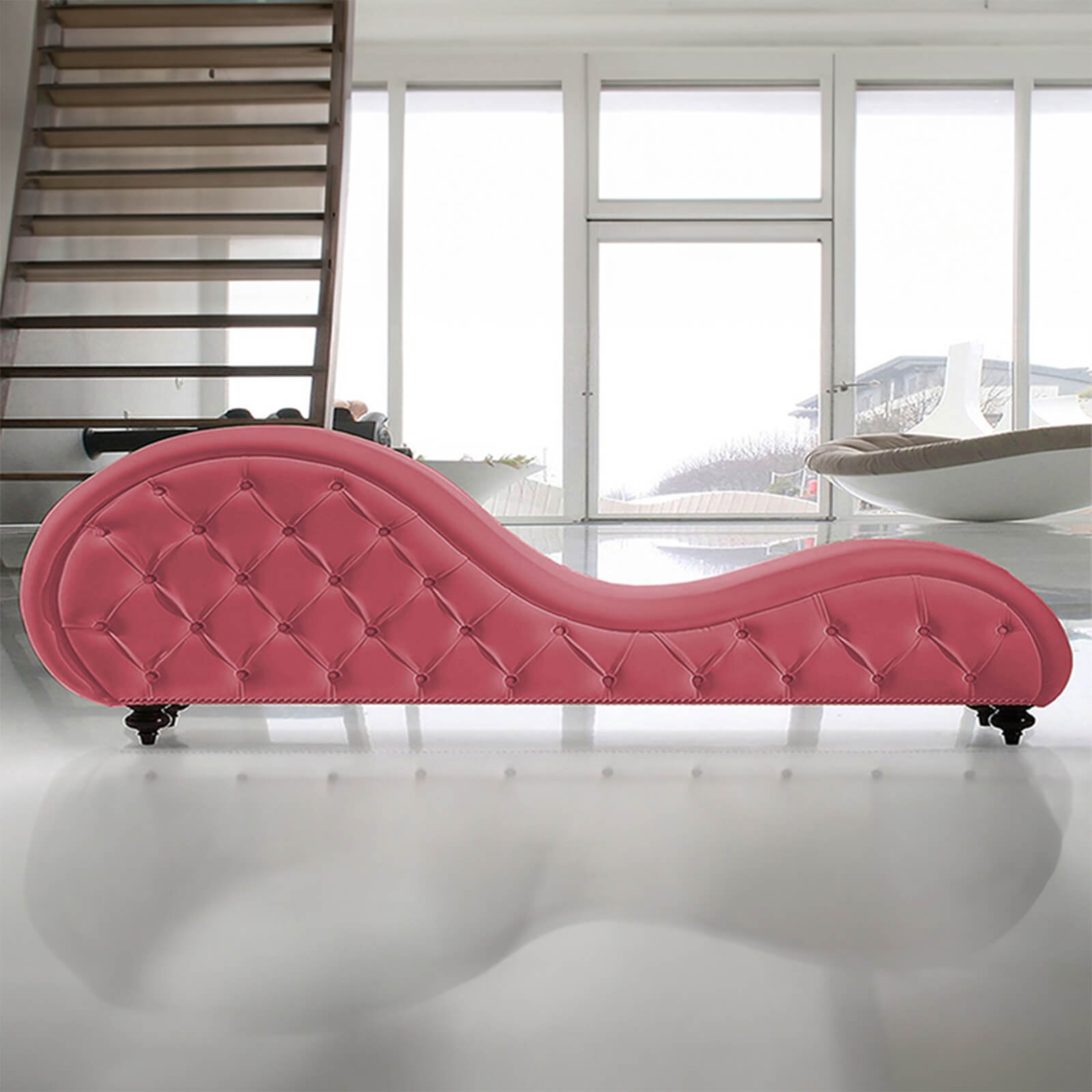 In House Romantic Chaise Longue Luxury And Romantic Design Sofa With Bed Mode Upholstery Pattern Of Velvet Fabric - Dark Pink