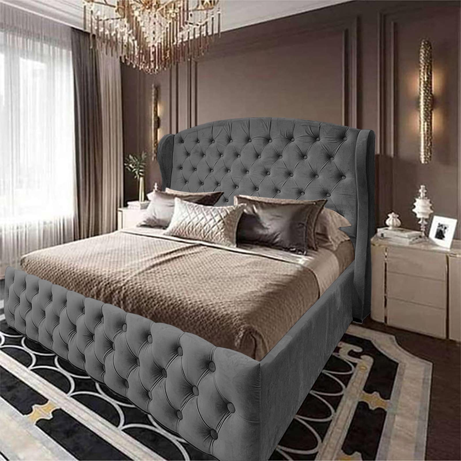 In House Serin Velvet Bed Frame - Queen - 200x150 cm - Dark Gray