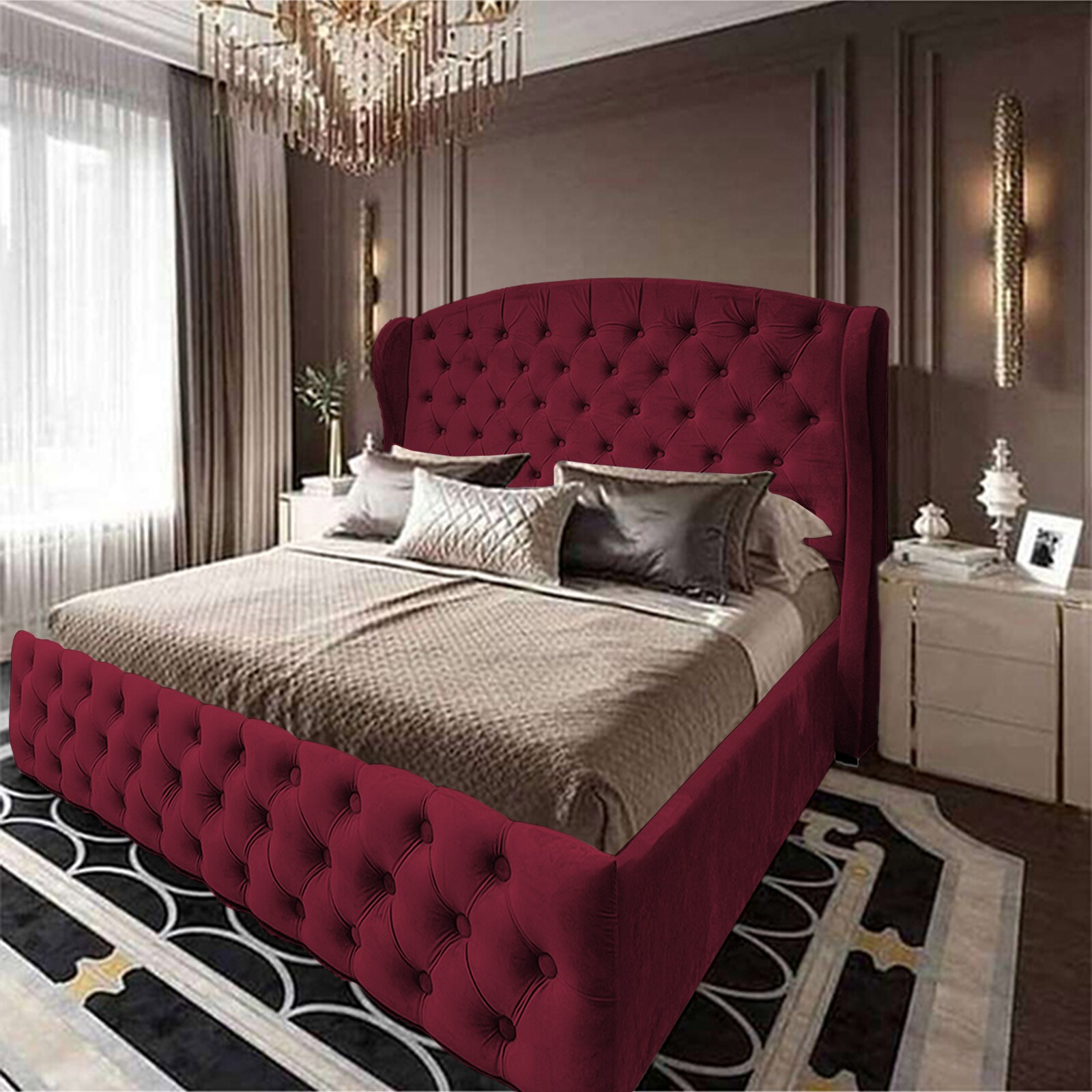 In House Serin Velvet Bed Frame - Queen - 200x150 cm - Burgundy