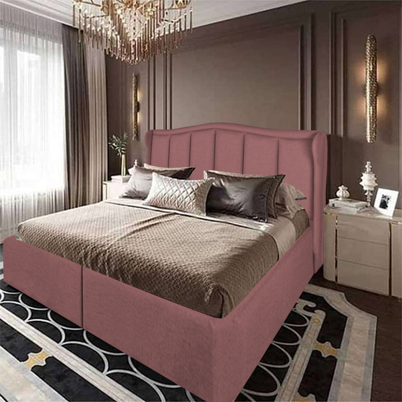 In House Shumt Linen Bed Frame - Queen - 200x160cm - Dark Pink
