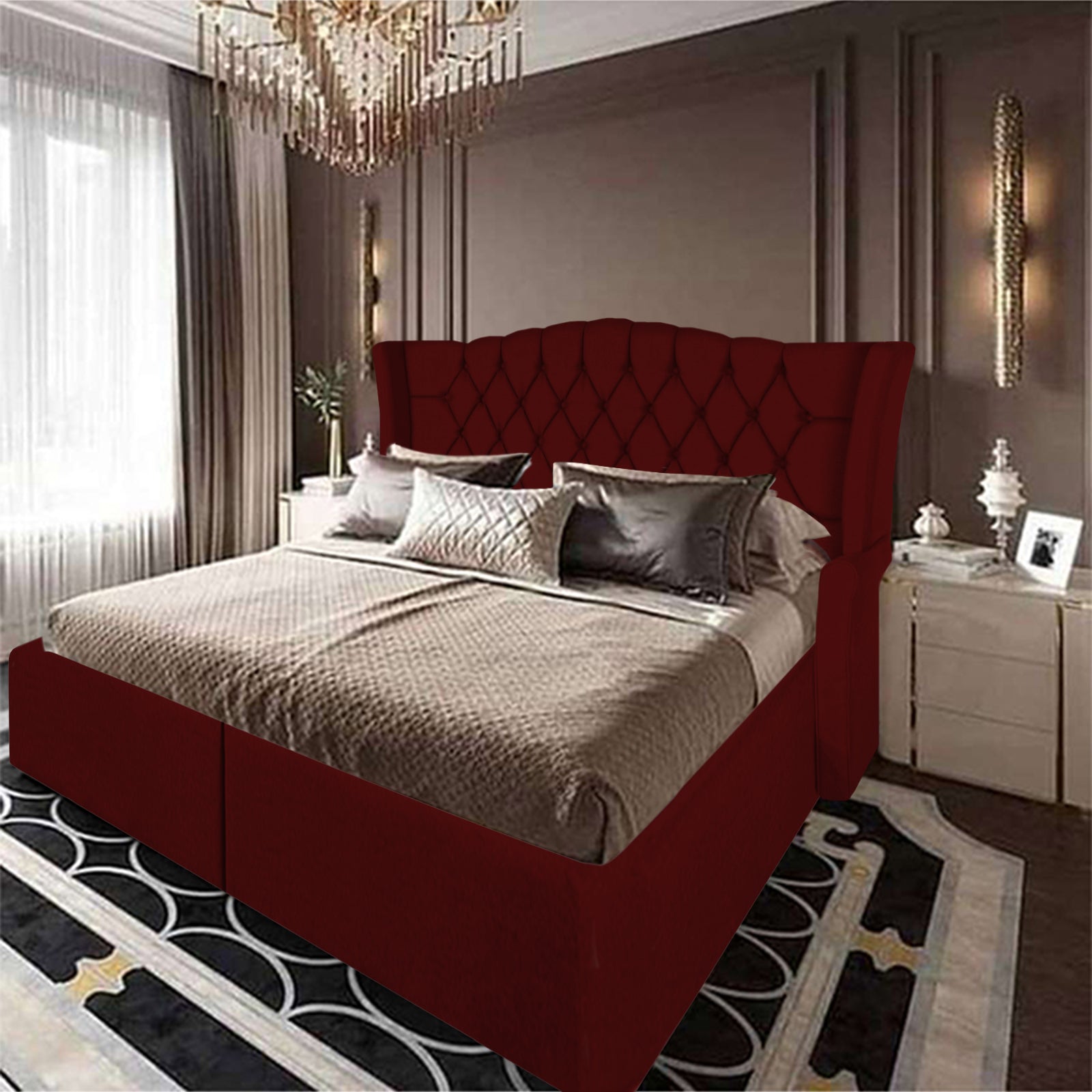 In House Taj Mahal Linen Bed Frame - Queen - 200x150cm - Burgundy
