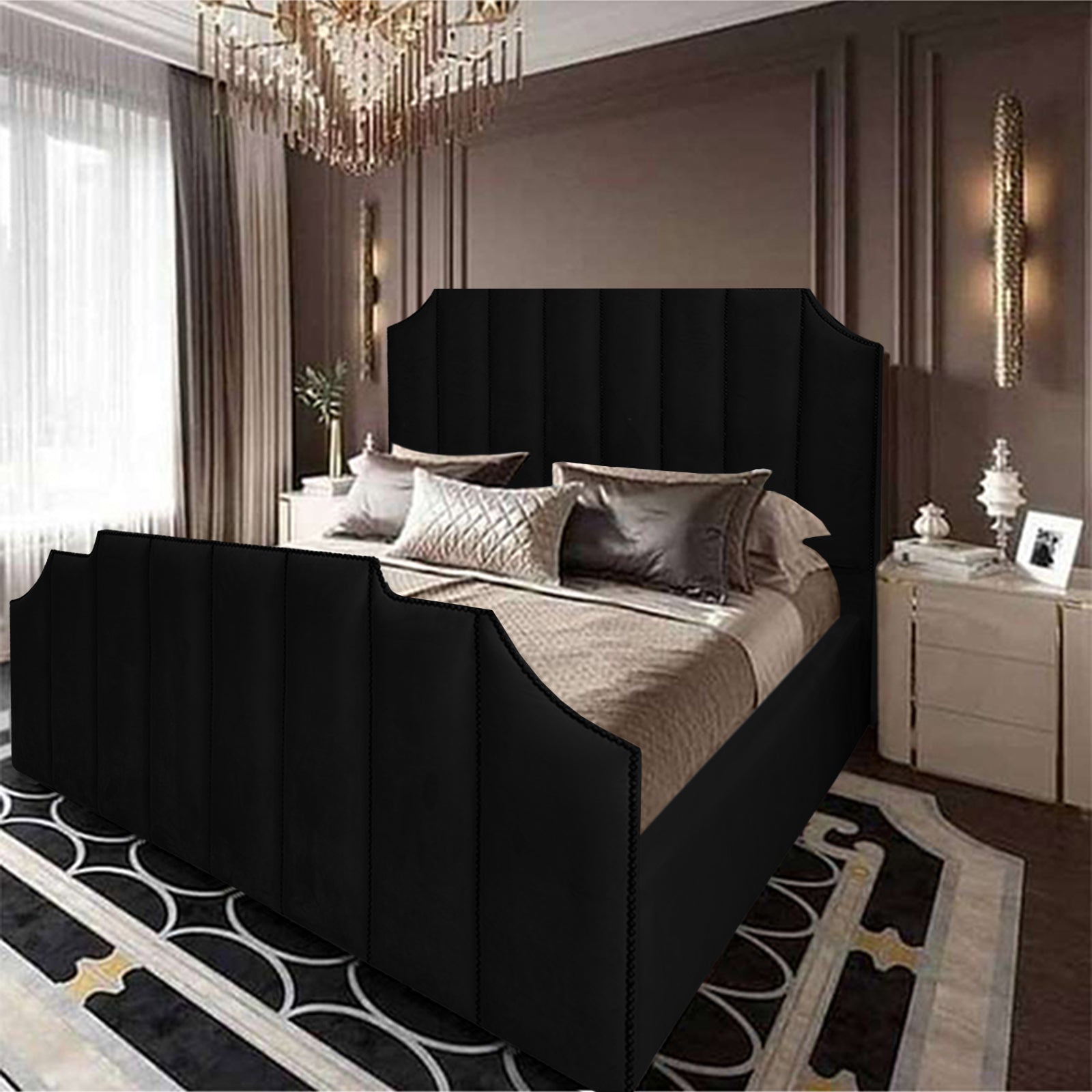 In House Taj Velvet Bed Frame - King - 200x180 cm - Black