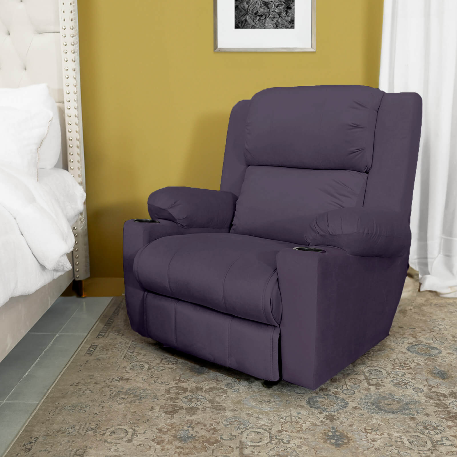 In House Velvet Classic Cinematic Recliner Chair With Cups Holder - Dark Purple - Lazy Troy