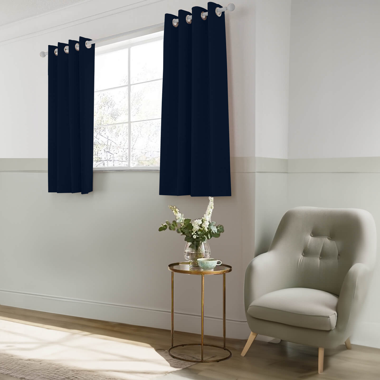 A pair of thermal insulated curtains made of high quality and elegant fabric designed to add a touch of sophistication to interiors.