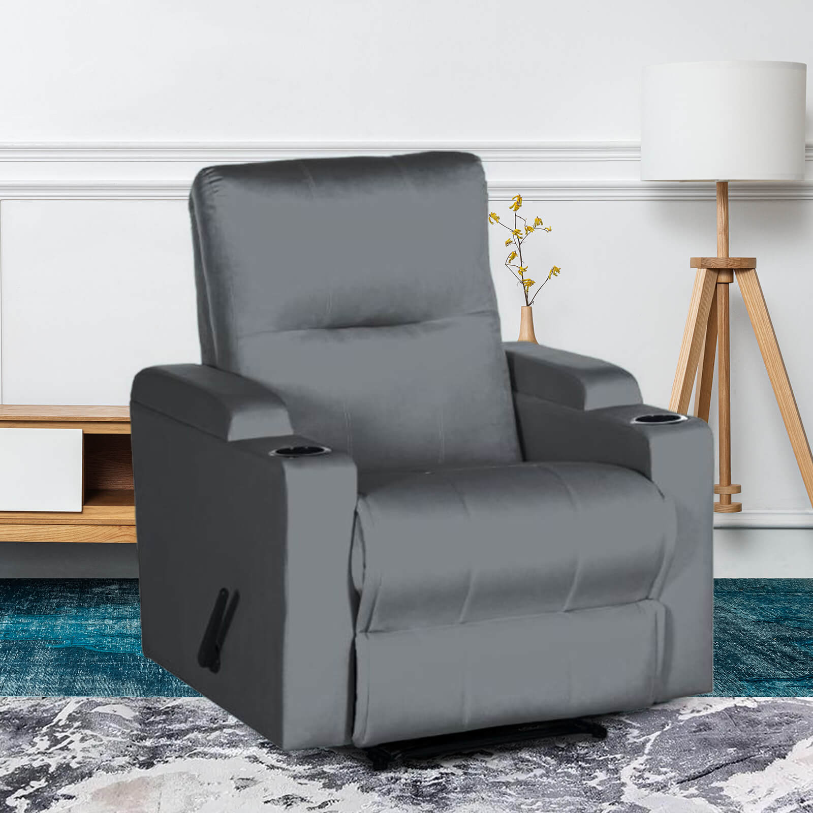 In House Velvet Rocking & Rotating Cinematic Recliner Chair With Cups Holder - Grey - AB08