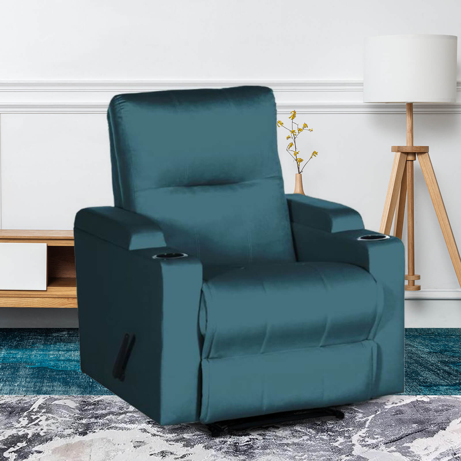 In House Velvet Rocking & Rotating Cinematic Recliner Chair With Cups Holder - Dark Turquoise - AB08