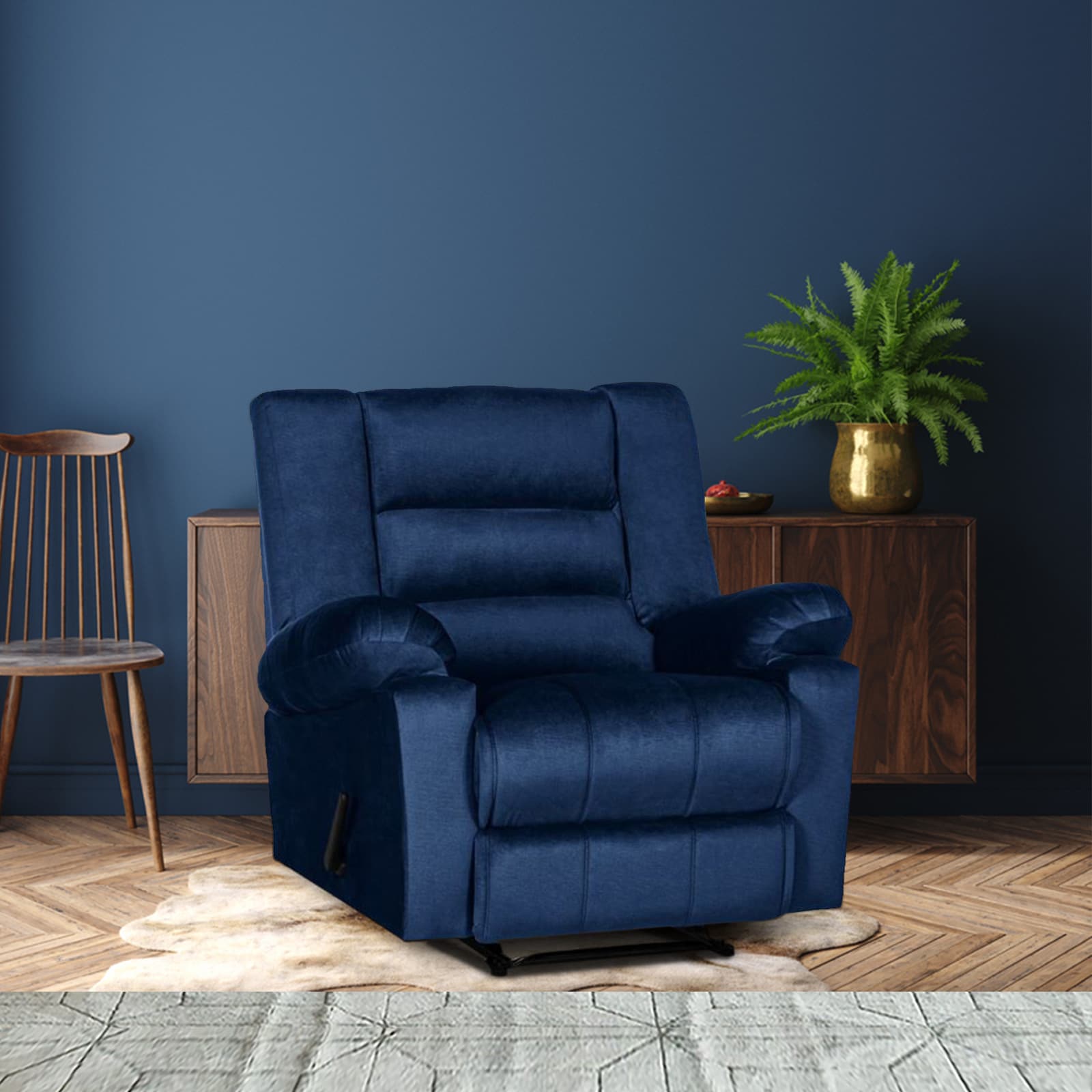 In House Velvet Rocking & Rotating Recliner Chair - Dark Blue - Nice 02