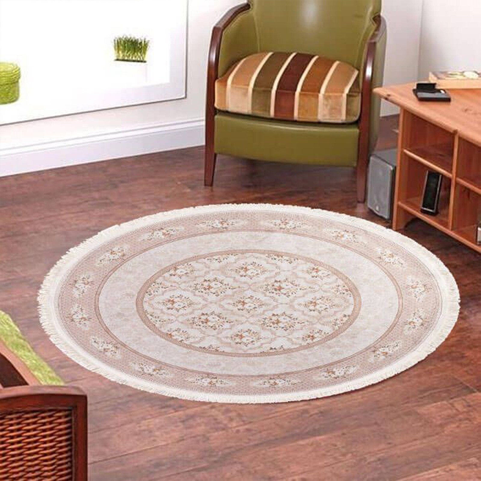 In House Velvet Turkish Round Decorative Carpet - Brown - 120x120cm