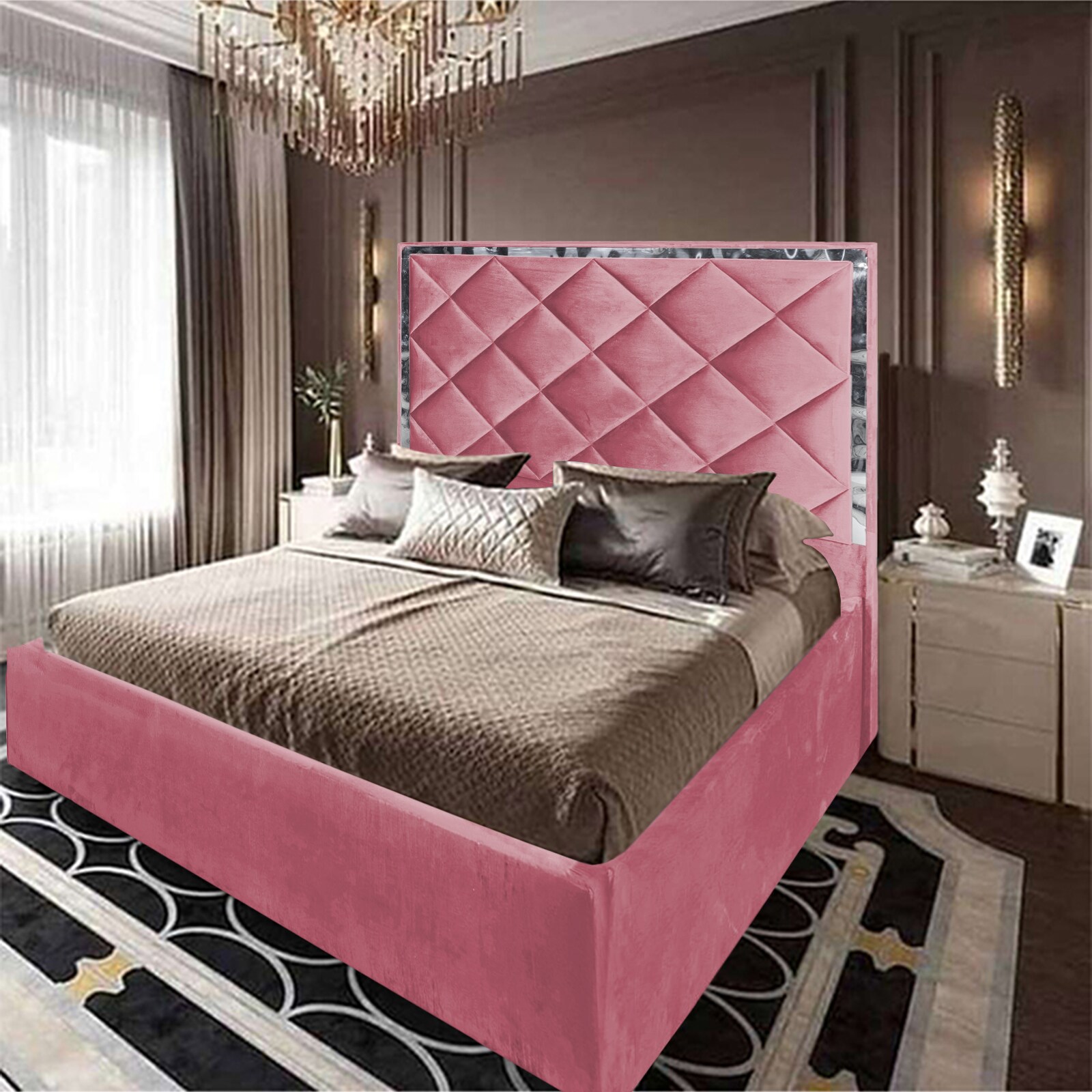 In House Victoria Velvet Bed Frame - Single - 200x120 cm - Light Pink