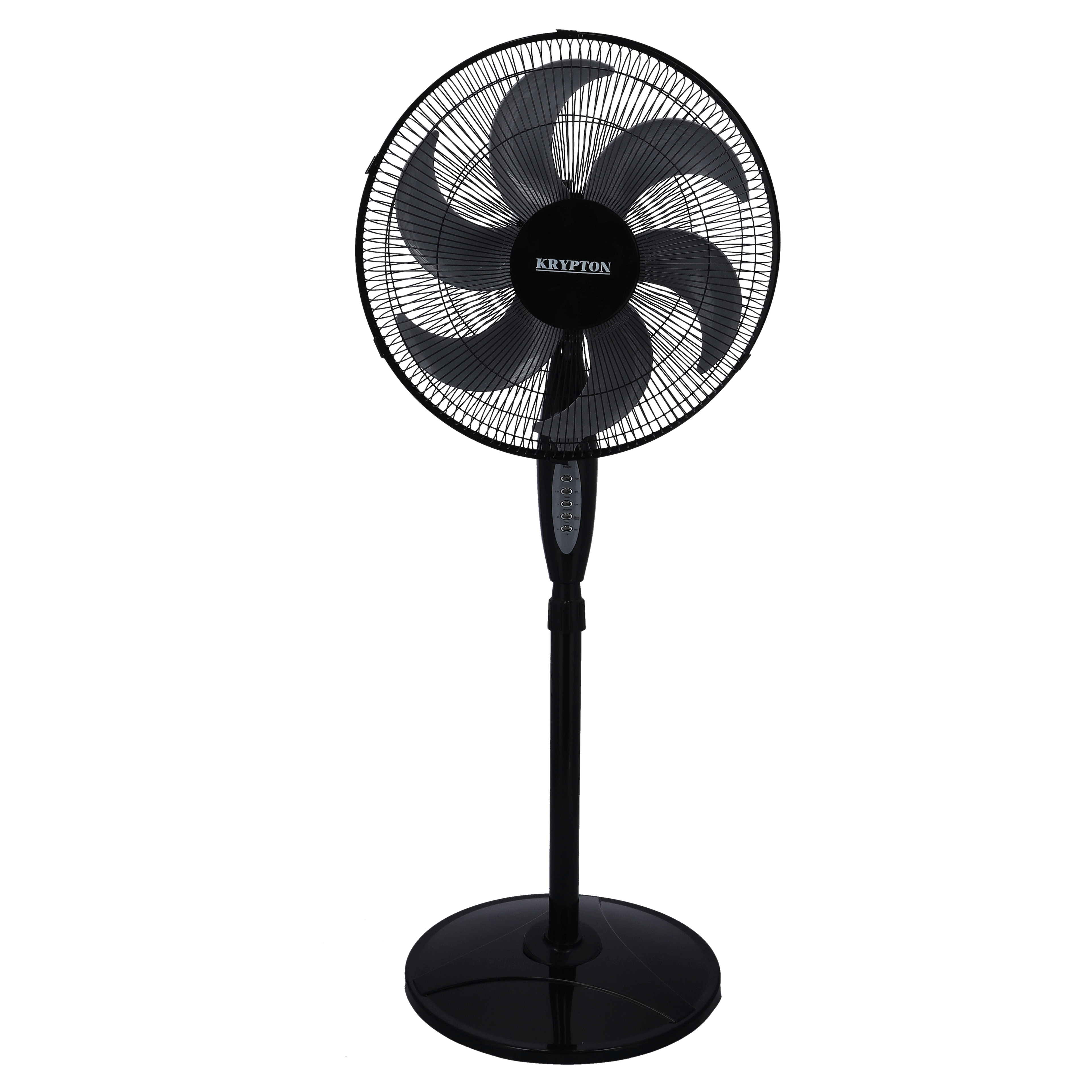 Beat the Summer Heat with the Comfortable Krypton 16" Stand Fan.Enjoy stronger cooling effects with this 16" stand fan. It shows off 6 blades, which moves more air and delivers up to 30% more air flow than traditional stand fans. The blades come alive with a powerful 75-watt powerful motor, blasting a powerful jet of air for keeping your living space well-ventilated. Use this stand fan without being bothered by loud buzzing or humming sounds. This stand fan features a Triple Zone tri-curve grill, which is designed to eliminate turbulence and lessen noise levels by up to 20%. Put it in your bedroom, hospital, office, play home or nursery.Krypton 16" standing fan is the perfect solution when you need increased airflow in just about any room of the home. Its height and tilt are both adjustable, and it can oscillate or stay still at 3 different speeds with 3 modes (sleep, normal, and nature mode), giving you complete and customized control. A simple, easy to use controls allows you to select modes and programed with 0.5 - 7.5 hours shut off timer to save energy. Or, use the remote control if you don't feel like getting up from your cozy spot. It's easy to move from room to room since it weighs less than 10 pounds, so you can enjoy a quiet, cool, circulated breeze whether you're working in your office, watching TV in your living room, or sleeping in your bedroom.