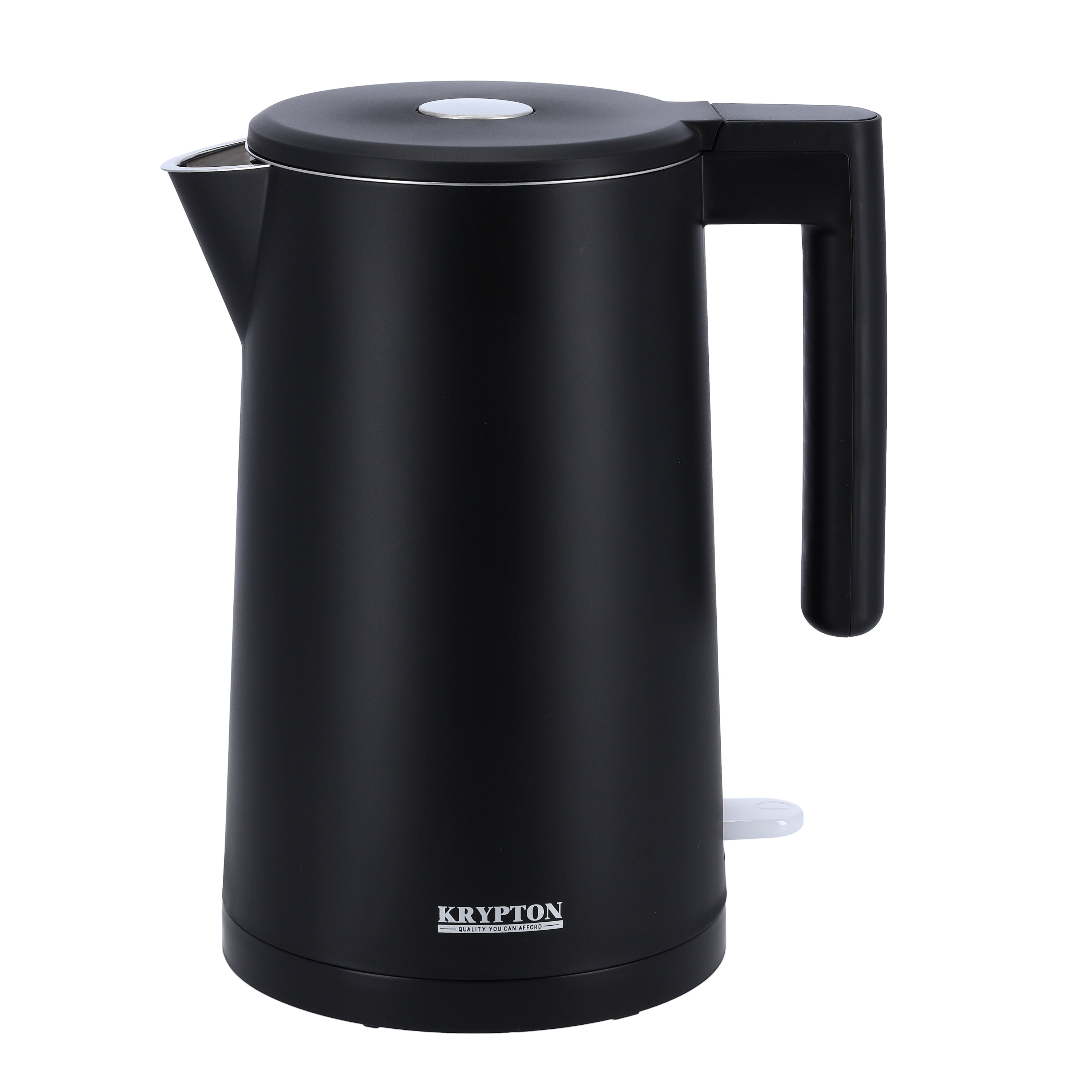 Krypton Double Wall Electric KettleKrypton electric kettle can boil 1.7L water within 5 mins, so you can enjoy a cup of hot beverage any time! Plus, our electric kettles are elaborately designed: cord wrap, easy to store, and completely cordless when off the base. One-click opening, easy to operate and allowing one-hand handling. Food graded material, SUS304 inner wall and plastic outer wall with cooling touch, all water contacted material is SUS304. All those features designed for you to have a better experience!To make pouring comfortable and simple this electric kettle features an ergonomic handle for easy pouring. And the water spout helps you to avoid spills to keep your kitchen clean and tidy. Integrated cord storage lets you collect and store the cord with ease. It keeps your place neat and tidy.'