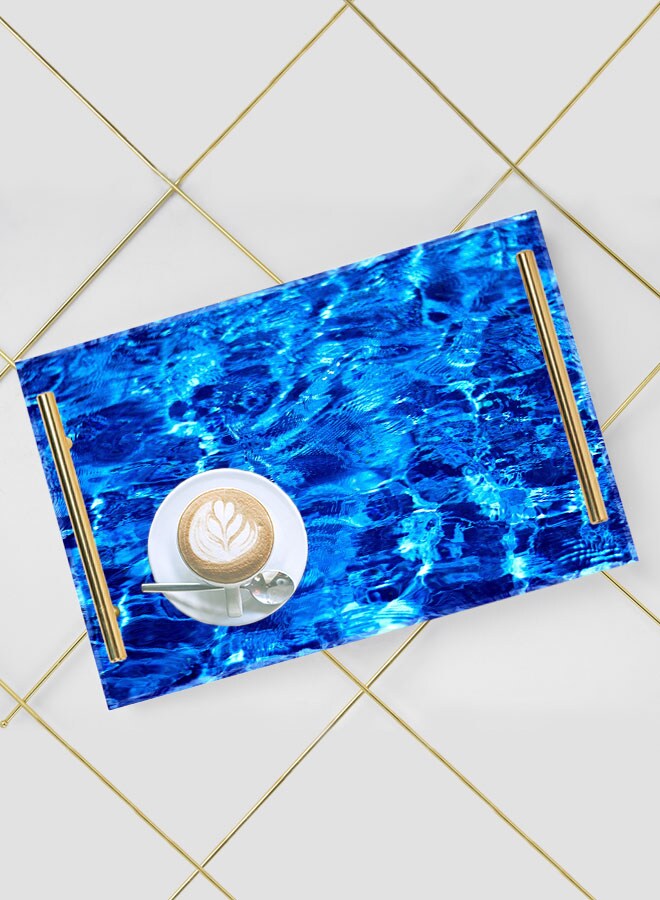 Lowha Decorative Acrylic Serving Tray With Gold Metal Handles And Pixabay Design 20x30 cm