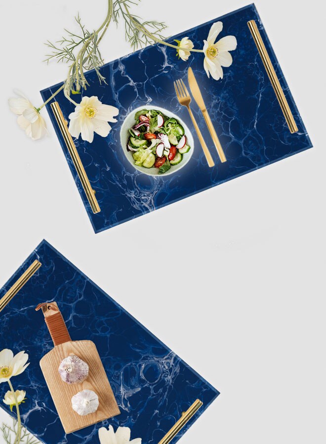 Lowha Decorative Acrylic Serving Tray With Gold Metal Handles And Marble Design Design 20x30 cm