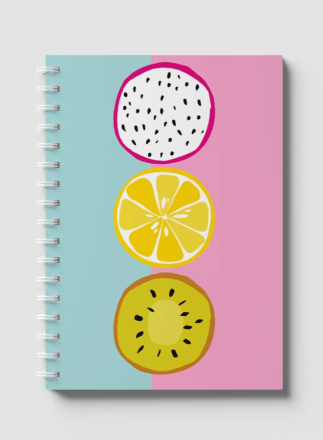 Lowha Spiral Notebook With 60 Sheets And Hard Paper Covers With Dragon Fruit Lemon Kiwi Slice Design, For Jotting Notes And Reminders, For Work, University, School