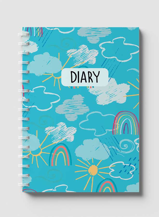 Lowha Spiral Notebook With 60 Sheets And Hard Paper Covers With Mixed Weather Doodle Design, For Jotting Notes And Reminders, For Work, University, School