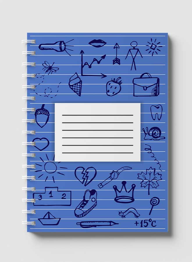 Lowha Spiral Notebook With 60 Sheets And Hard Paper Covers With Back To School Lines Design, For Jotting Notes And Reminders, For Work, University, School