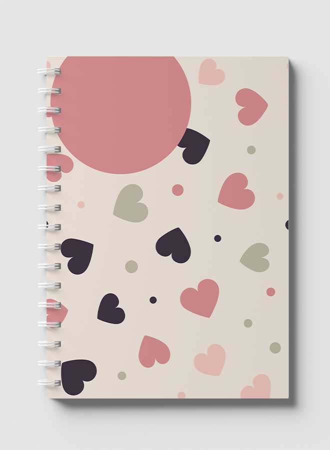 Lowha Spiral Notebook With 60 Sheets And Hard Paper Covers With Graphic Hearts Design, For Jotting Notes And Reminders, For Work, University, School