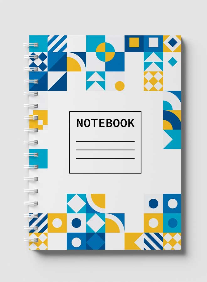 Lowha Spiral Notebook With 60 Sheets And Hard Paper Covers With Flat Mosiac Design, For Jotting Notes And Reminders, For Work, University, School