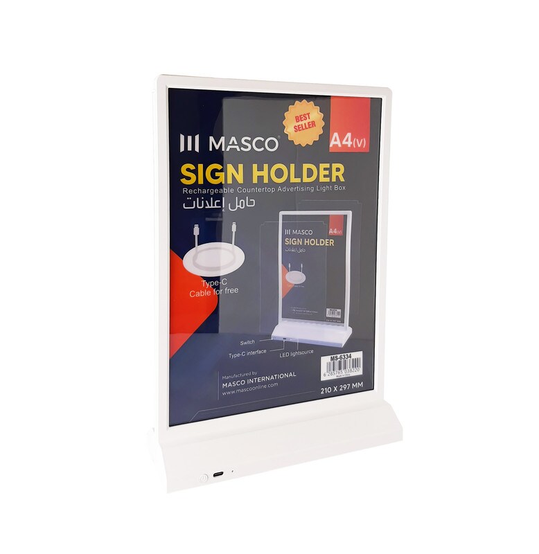 MASCO Rechargeable Countertop Advertising Light Box Sign Holder, 210 x 297 Mm
