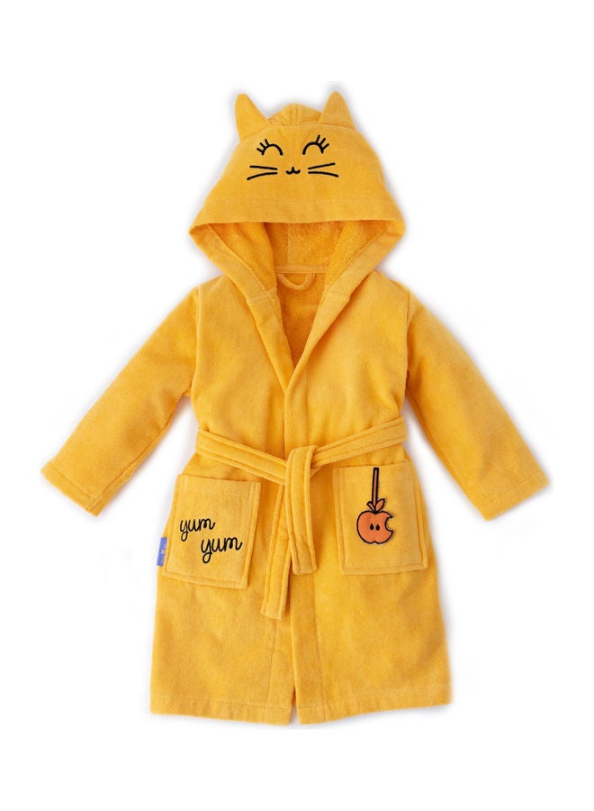 FUN DESIGN KIDS ROBE: FUN DESIGN KIDS ROBE: This cute unisex kids bathrobe has an adorable animal Tombish Cat on it. It has stand up ears and the sweetest face ever with an attractive orange color.You will also love the cute embroidery detailings and matching colors on the design. Available in Buzzy Bee (yellow), Sangaloz ( blue), Chancin (pink), Cacha Frog (green) styles. Each animal design features an ultra soft fabric with sweetly styled face and ears