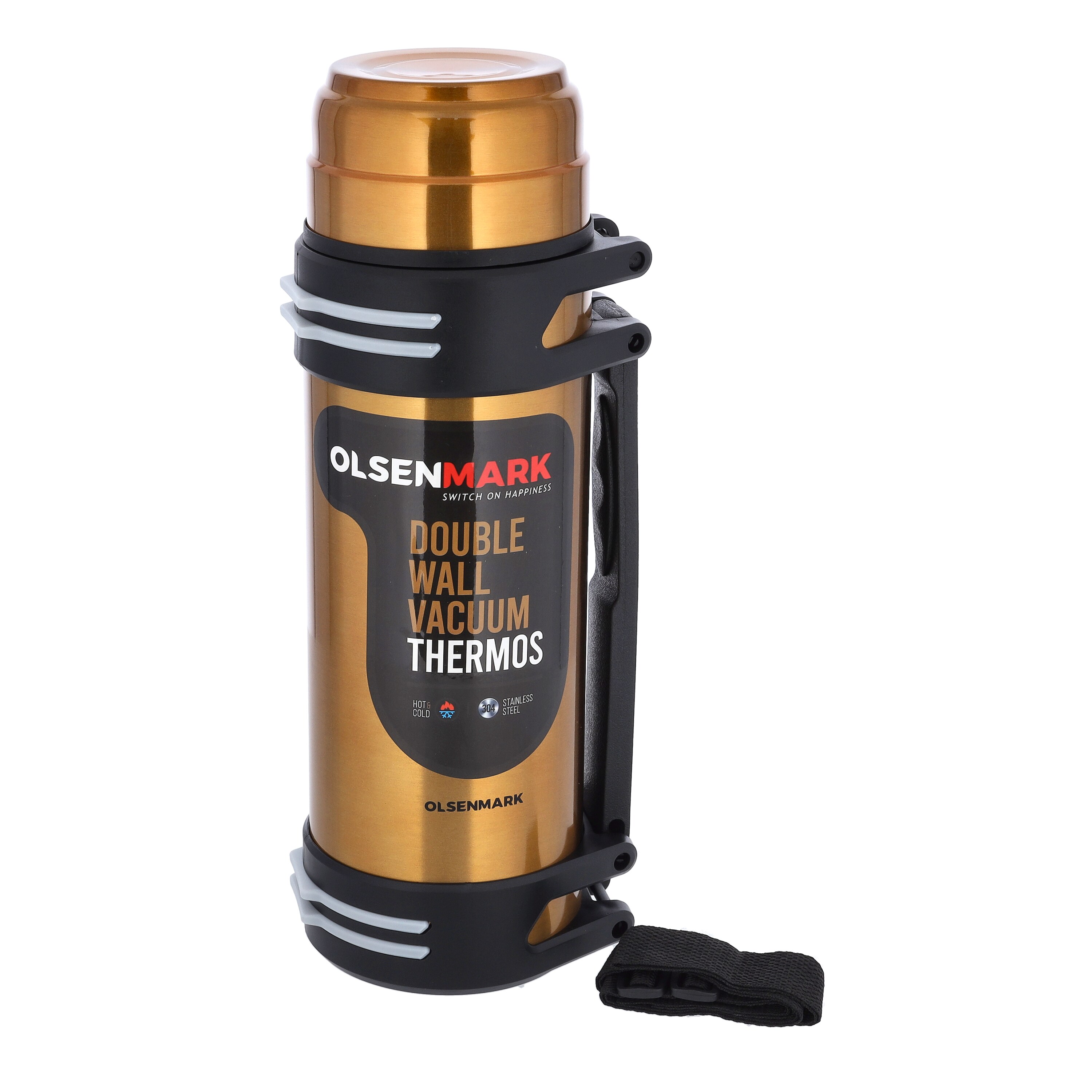 Olsnenmark Stainless Steel Vacuum Thermos, Leak Proof, 2000ml, Omvf2499, Heat Preservation & Cold Insulation, Double Wall Vacuum Insulation, Built-In Cup, Folding Handle