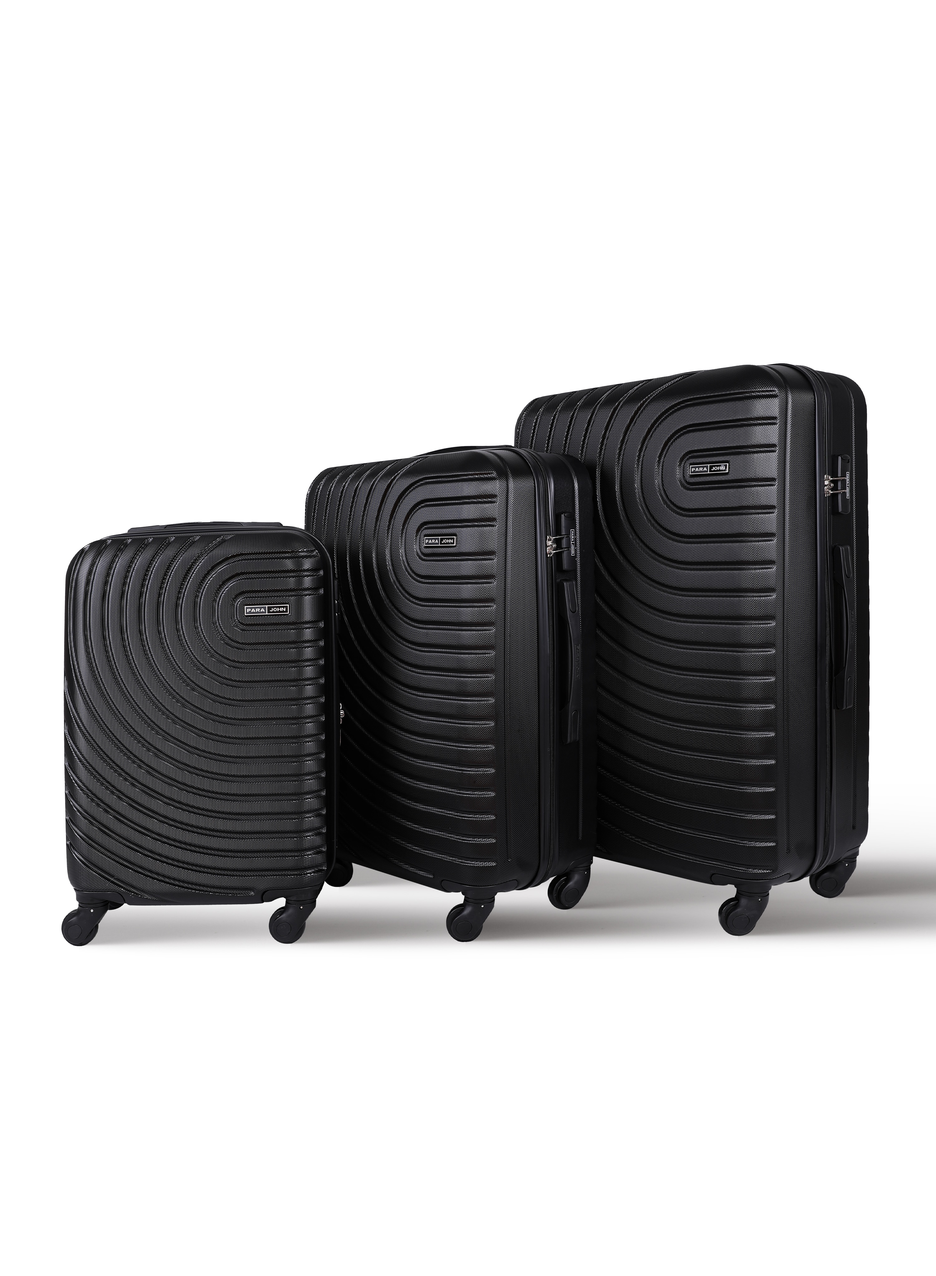 Parajohn Luggage Spinner Bags, Set of 3 (20'', 24'', 28'')For a Stress Free TravellingA great choice for international travel, these stylish hard-shell spinner luggage are very convenient for carrying - The luggage bags also works well for weekend getaways or five-day business trips, offering enough packing space to hold clothes, toiletries, and a pair of shoes.The suitcase benefits hugely from its ABS shell as it is strong, durable and highly scratch-resistant - yet also light enough to keep the weight of the suitcase down so you can pack more of your things. It is highly suited to the rigours of modern transportation and rough treatment from baggage handlers.Four 360 spinner wheels allow the suitcase to move seamlessly, can be effortlessly rolled beside you - no need to drag your heavy luggage behind you. The double-tube retractable handle makes it easy to control the suitcase. The handle can be retracted when not in use using the handy push-button release mechanism.The smooth, chunky zippers make it easy to open and close the suitcase, and can be secured together using the 3-digit combination lock . Top and side grip handles make it easy to load and unload. The interior features packing straps to keep the contents in place during transit. It also features a zipped divider, with an additional zipped mesh storage pocket.Cabin SizeA great choice for international travel, these stylish hard-shell spinner luggage is very convenient for carrying - The luggage also works well for weekend getaways or one- to two-day business trips, offering enough packing space to hold a few changes of clothes, toiletries, and a pair of shoes according to the 3 bags.Interior!Bottom: Elastic cross ribbons with Smart-Fix buckle system and mesh side pocketTop: zipped mesh divider, and additional pocket