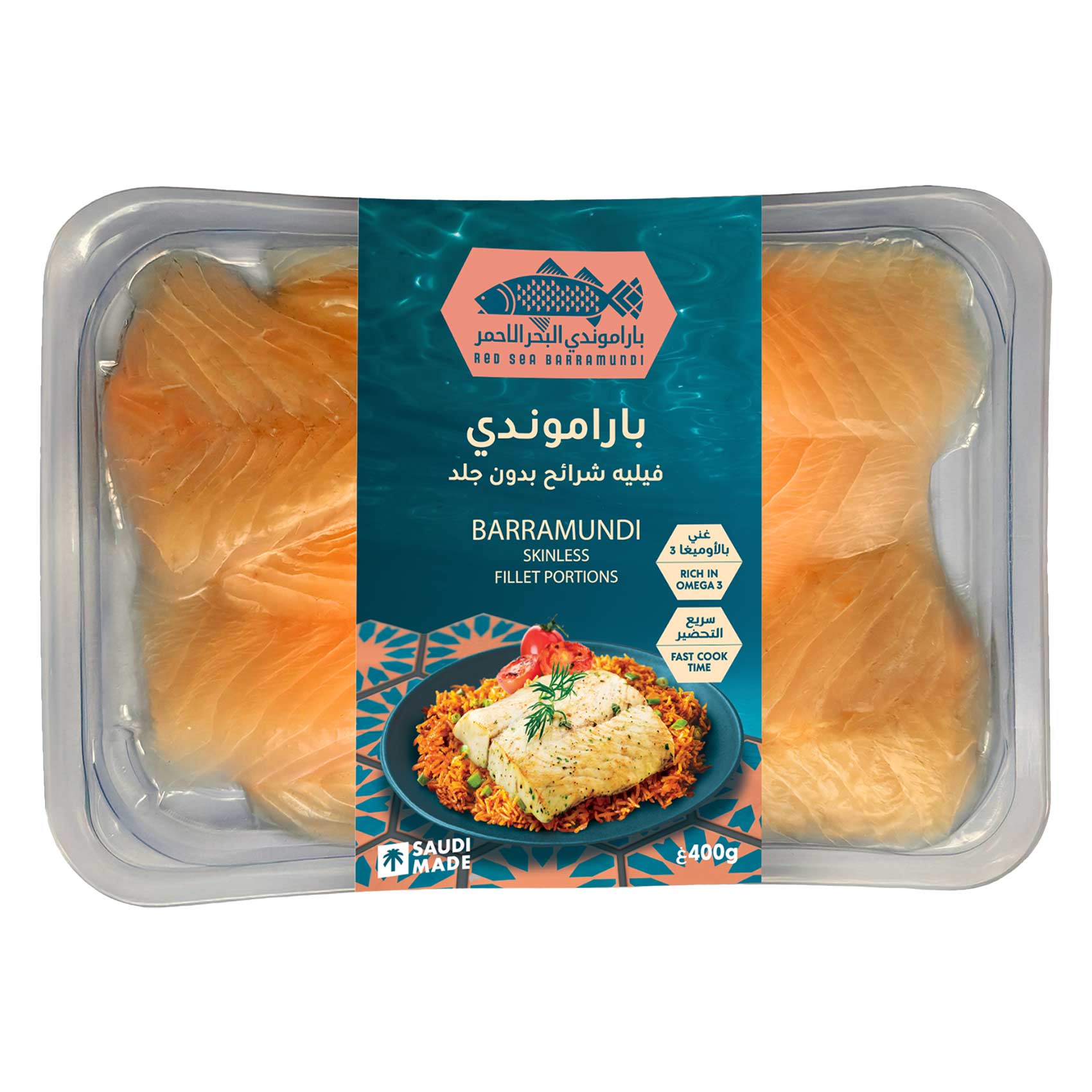 RED SEA Barramundi Skinless Fillet Portions 400g Rich in Omega 3 Fast Cook Time Saudi Made