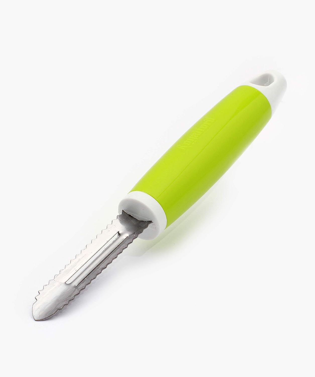 - If your old vegetable peeler is making hard work of even the simplest of tasks then it's time to replace it with our original Royalford multi-peeler. It will speed things up in the kitchen, have you eating healthier and leave you wondering why you hadn't done these years ago! With stainless steel blades that cut both in an upwards and downwards direction, your cutting, peeling and slicing times will be halved. It makes light work of peeling fruit, slicing vegetables, grating hard and soft cheese and shaving chocolate. You can even create beautiful garnishes to decorate your dishes with in just a few moments. The Royalford Lancashire Peeler boasts a sharp stainless steel blade that removes the toughest of fish, fruit and vegetable skins with ease. Double-sided stainless steel blade with eye-picker. Very a-peeling! Peel to Perfection, Built-in blemish remover The Peeler has a durable, built-in eye remover which carves out blemishes without ruining your produce. Smooth Moves The sharp, stainless steel blade glides through even the toughest fruit and vegetable skins with ease, removing the peel without wasting fruit. Non-Slip Grip The soft, oversized handle is designed for repetitive strokes and is non-slip, even if your hands are wet. Easy to store Finished peeling? This peeler will fit nicely in just about any kitchen drawer or utensil holder. Alternatively, hang it on display with its built-in hanging loop. Thoughtful Design The Peeler is dishwasher safe for added convenience.