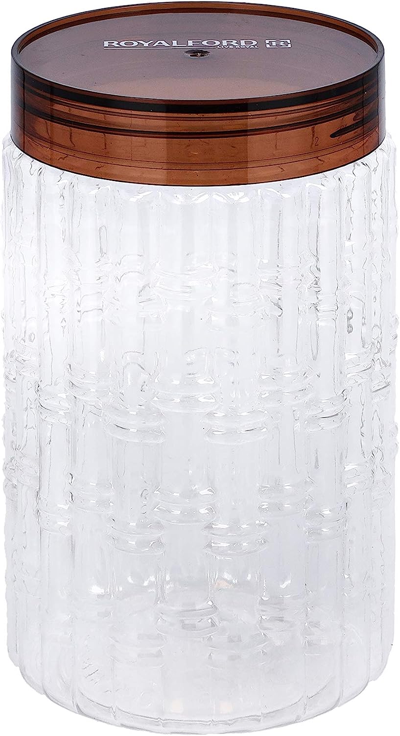 - Good kitchen organization is part of the well-being of your kitchen which is actually a tough job. When we think about maintaining goods first thing that comes into mind that is glass jars or canisters for storage. Professional organizers love the idea of "decanting," which, in the context of pantry organization, means placing bulk items and goods like flour, sugar, rice, and beans into their own glass or plastic containers. A clear glass bottle allows you to see what is inside and easily monitor whether your food has run out.This Royalford canister is designed ergonomically for a modern kitchen as it gives visual delight to your eyes and the kitchen looks smarter and tidier. You can use them to keep anything to make your kitchen well-maintained and more organized. These jars are lightweight so you can carry them easily while picking and placing them. Thus, you can fill canisters with ingredients and keep them easy with comfort and ease wherever you want. It is easy to clean and wash, you can simply clean it using soapy water and brush and let it dry for further use.This Royalford canister would be a great gift as it looks attractive you can gift your loved ones on the occasion of housewarming parties, wedding ceremonies, and more. This canister jar you can use for home, hotels, cafes, restaurants, office pantries, college canteens and more.