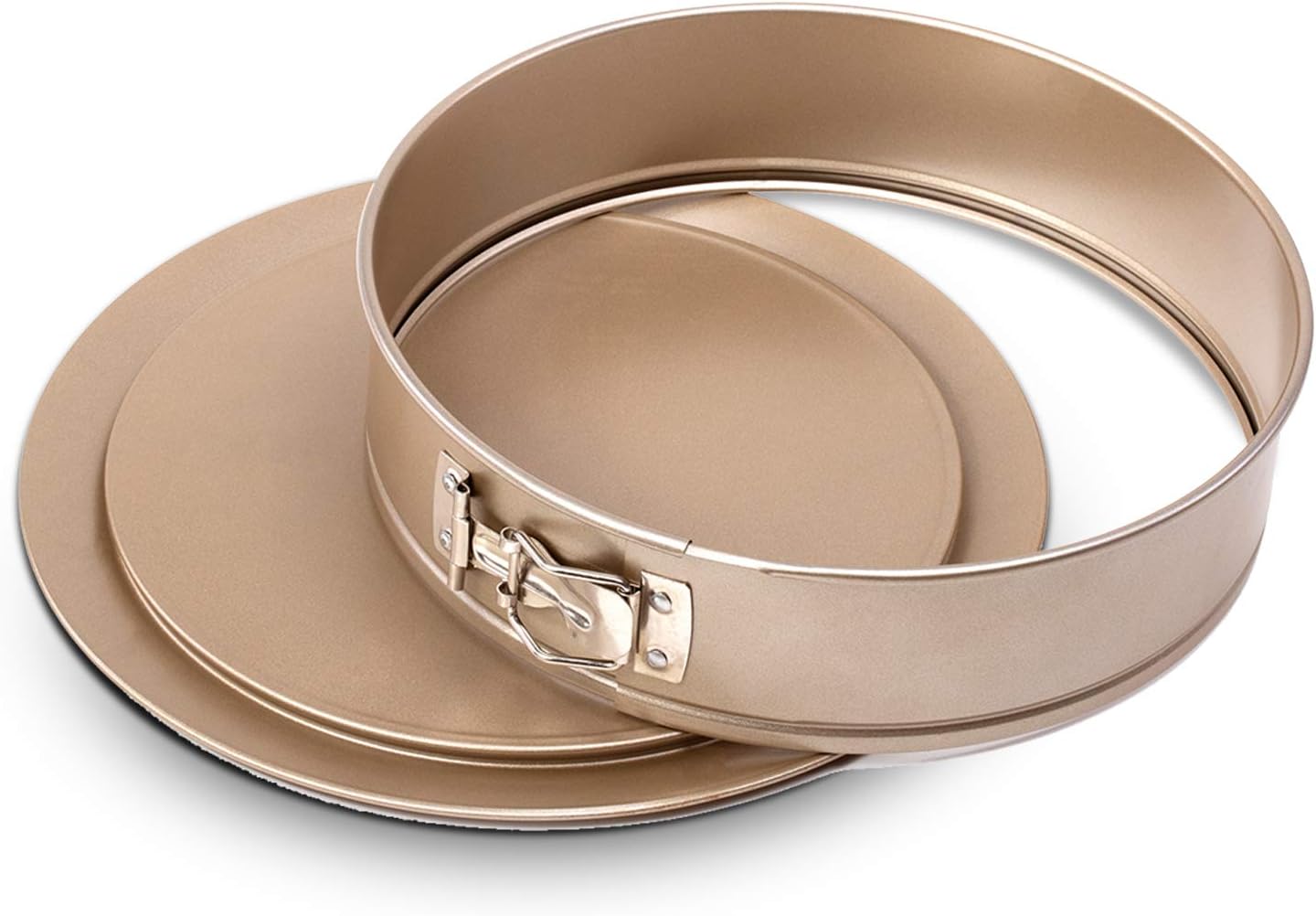- HEAVYWEIGHT QUICK-RELEASE This design helps you bake beautifully rounded cakes that pop out in the perfect shape and includes handy size-markings to guide your layering. STYLISH AND TASTEFUL DESIGN With the tasteful minimalistic design of this product, it is sure to fit in with a wide variety of aesthetic tastes of any home kitchen or restaurant establishment. It would also be the perfect gift for the holidays or as a house-warming present for your friends and family! Very pleasing to look at, this go-to cake pan is surely a good addition to your kitchen! EASY TO CLEAN This is dishwasher safe, but you can also wash it with warm, soapy water. The non-stick pan will ensure that no bits and pieces of food clump together, making it easy to maintain the quality of this kitchen tool. Simply wash with water and soap to remove any unwanted residue and bits of food and allow drying. They can also be simply popped in with your other washables inside the dishwasher. PERFECT FOR STORAGE Safely put away all the cake tin sets by stacking them on top of each other and place neatly inside the kitchen drawer or kitchen cabinet.