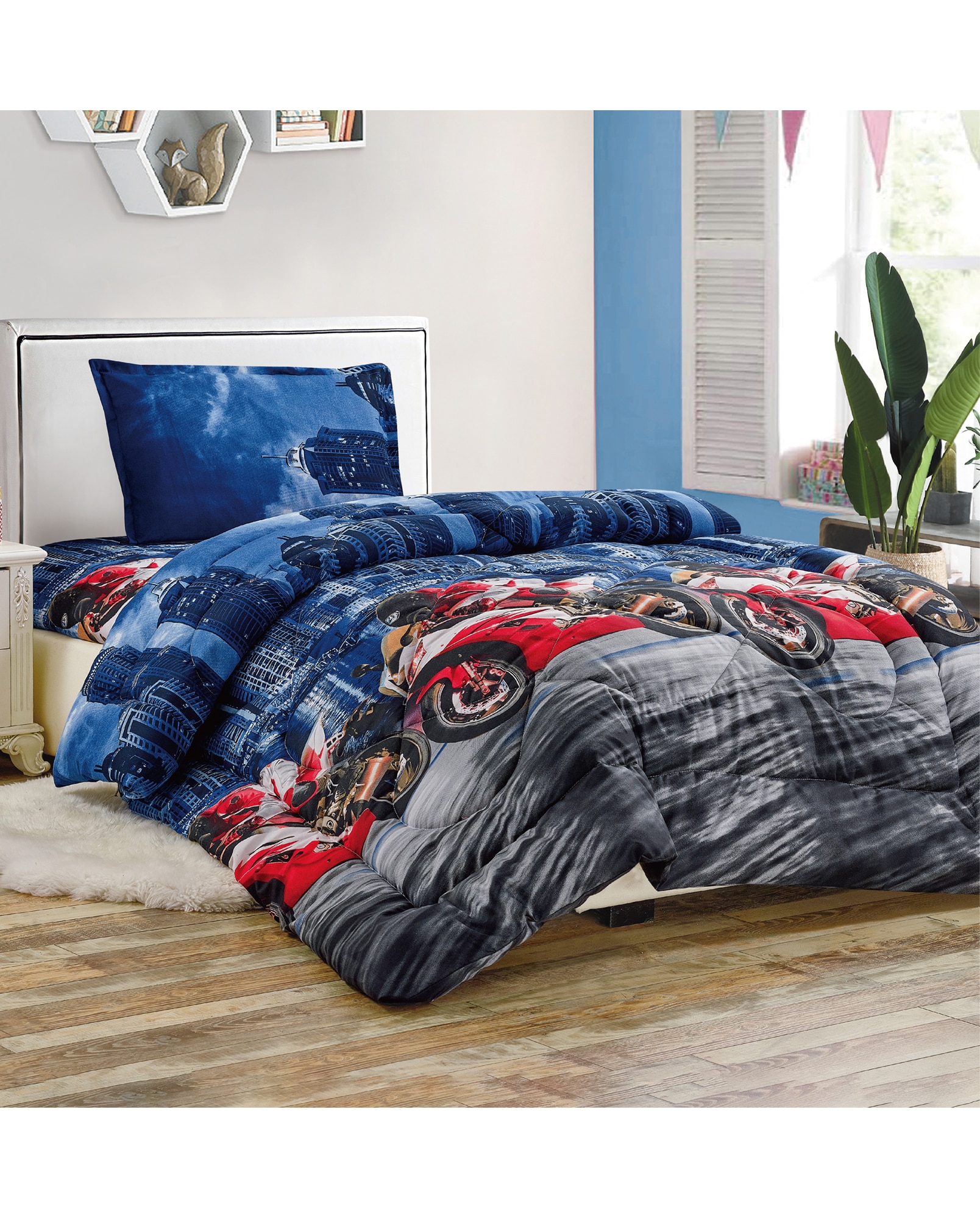 Sleep Night 3 Pieces Kids Medium Filling Printed Comforter Set, Single Size 160 X 210cm Bedding Set For Girls And Boys, MultiColor