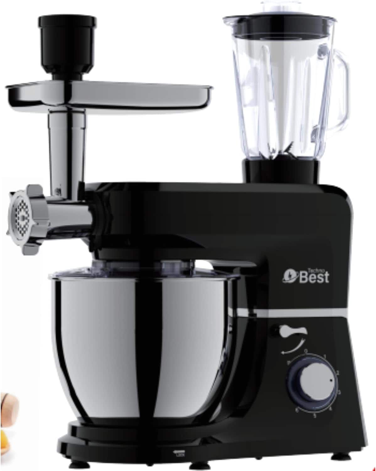 Techno Best Kitchen Stand Mixer Machine, 1100W Power, 8L Large Capacity, Stainless Steel Bowl, 6 Speed Settings Plus Pulse For Perfect Baking Results, Easy Mixing & Kneading, BKM-08L, Black
