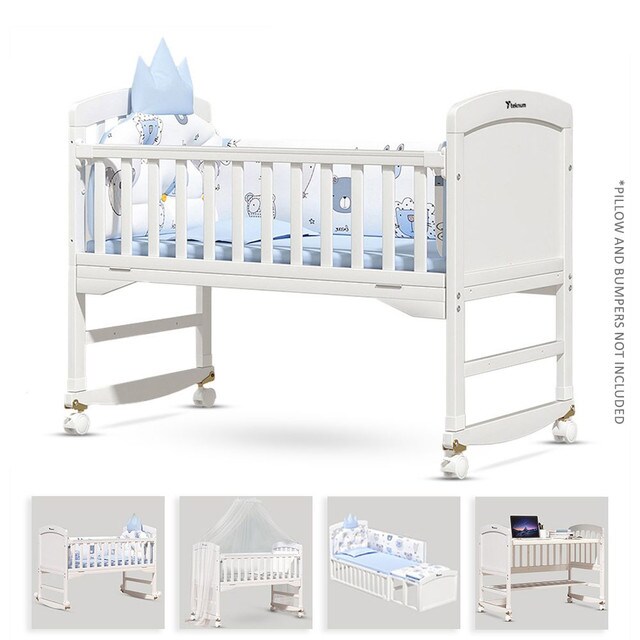 TEKNUM 7 - in - 1 Convertible Bed is a complete package be it your newborn or toddler, no wonder this convertible bed is a must have for every parent. This Teknum bed by SAMBOX can be converted as an Infant Cot or Bassinet / Cot with Changing Table / Cot with Side Table / Rocker Bed / Toddler Bed Side Crib / Kids bed or Sofa Bed / Study table or Computer table. It comes with wheels to Move from bedroom to living room easily, Just fold the wheels it will become a Rocker or Just Remove the wheels base to make it a Beside Side Crib and further to a Toddler bed which is expendable 114cm to 159cm to make it a Kids bed or Sofa Bed and can bear up to 40Kg weight and it can be converted to Study table or Computer table when your kid is grown up so it will be always with your kid. Attached table can be adjusted as top changing table for Infant and side table for Toddler and bed extension for Kids. Convertible Companion Bed is made of New Zealand Pine Wood comes with 5cm thick breathable and comfy mattress with top layer of memory foam and covered with washable cotton fabric and mosquito net. The Lovely Color and Design will accentuate your Baby's nursery and practically a must have for every New Parent! SPECIFICATIONS: • Product Dimensions(cm) : 114*63*86 • Product Weight(kg) : 17 • Packing Dimensions(cm) : 114*65*20 • Packing Weight(kg) : 19 • Nursing Table Size(cm) : 60*45 • Wooden Material : 100% New Zealand Pine Wood • Mattress Dimensions(cm) : 110*56*5cm. • Cover Fabric Material :100% Cotton • Mattress Base Material : Coir • Mattress Top Material : Memory Foam • Expendable Size(cm) : 114 to 159 • Suitable Age(Years) : 0 to 12 • Weight Capacity(kg) : 40 PACKING INCLUDES: • 1*7 - in - 1 Convertible Kids Bed & Bedside Crib • 1*Breathable and Comfy Mattress • 1*Mosquito Net • 4* Detachable Wheels