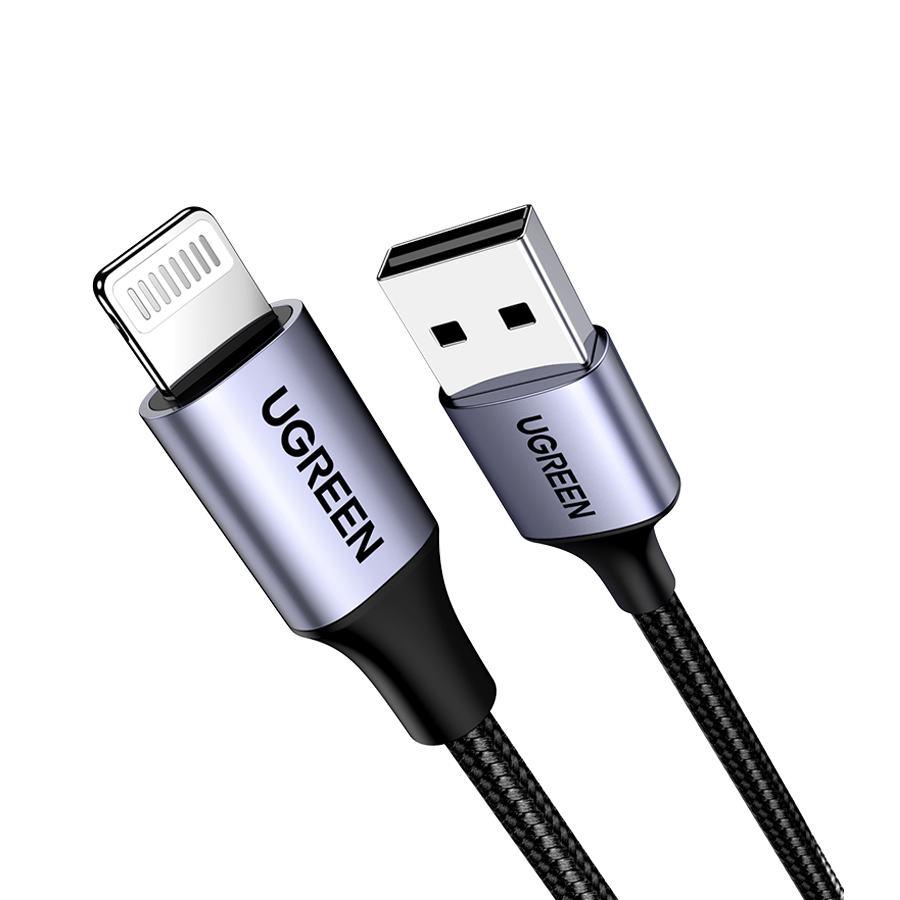 Ugreen Lightning to USB Cable Alu Case with Braided 2m - Black